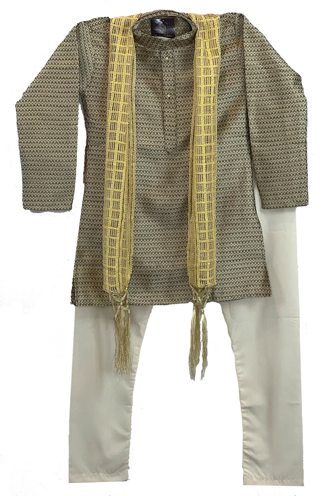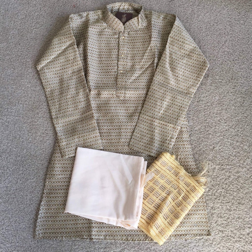 Cream/Gold/Green Jamawar Kurta Pajama with Dupatta