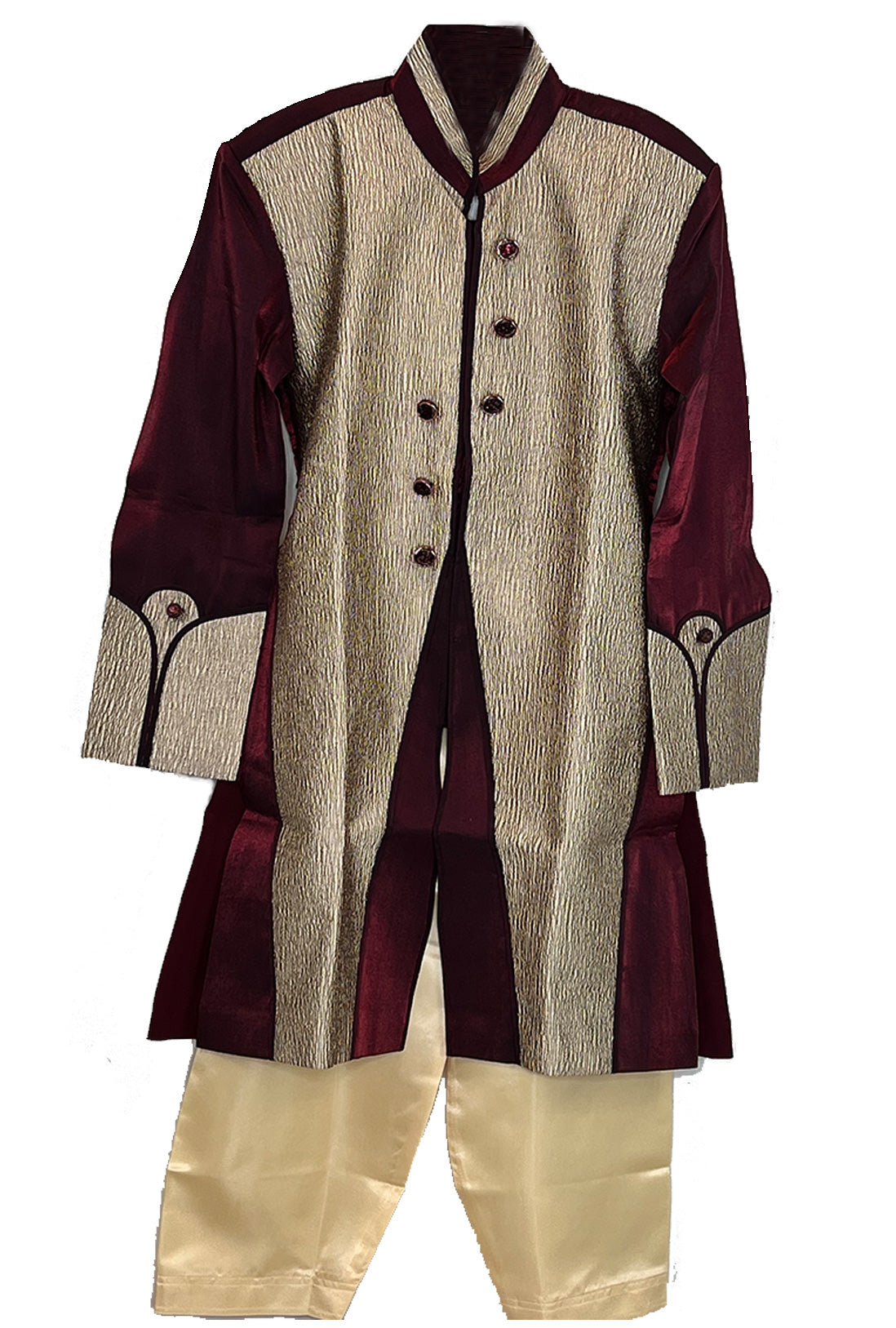 Wine/Gold Silk Sherwani/Jacket with Salwar