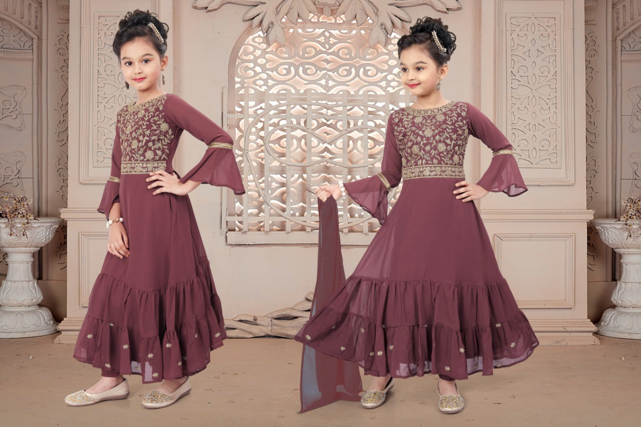 Brown Georgette Floor Length Suit/Chudidar with Dupatta