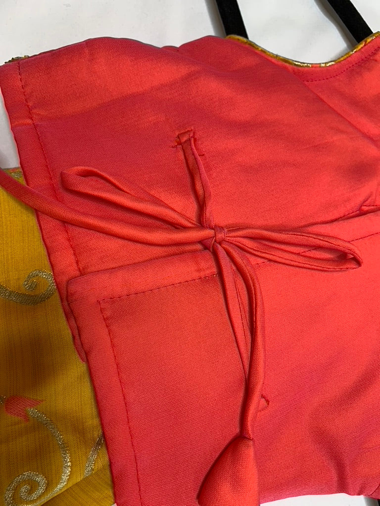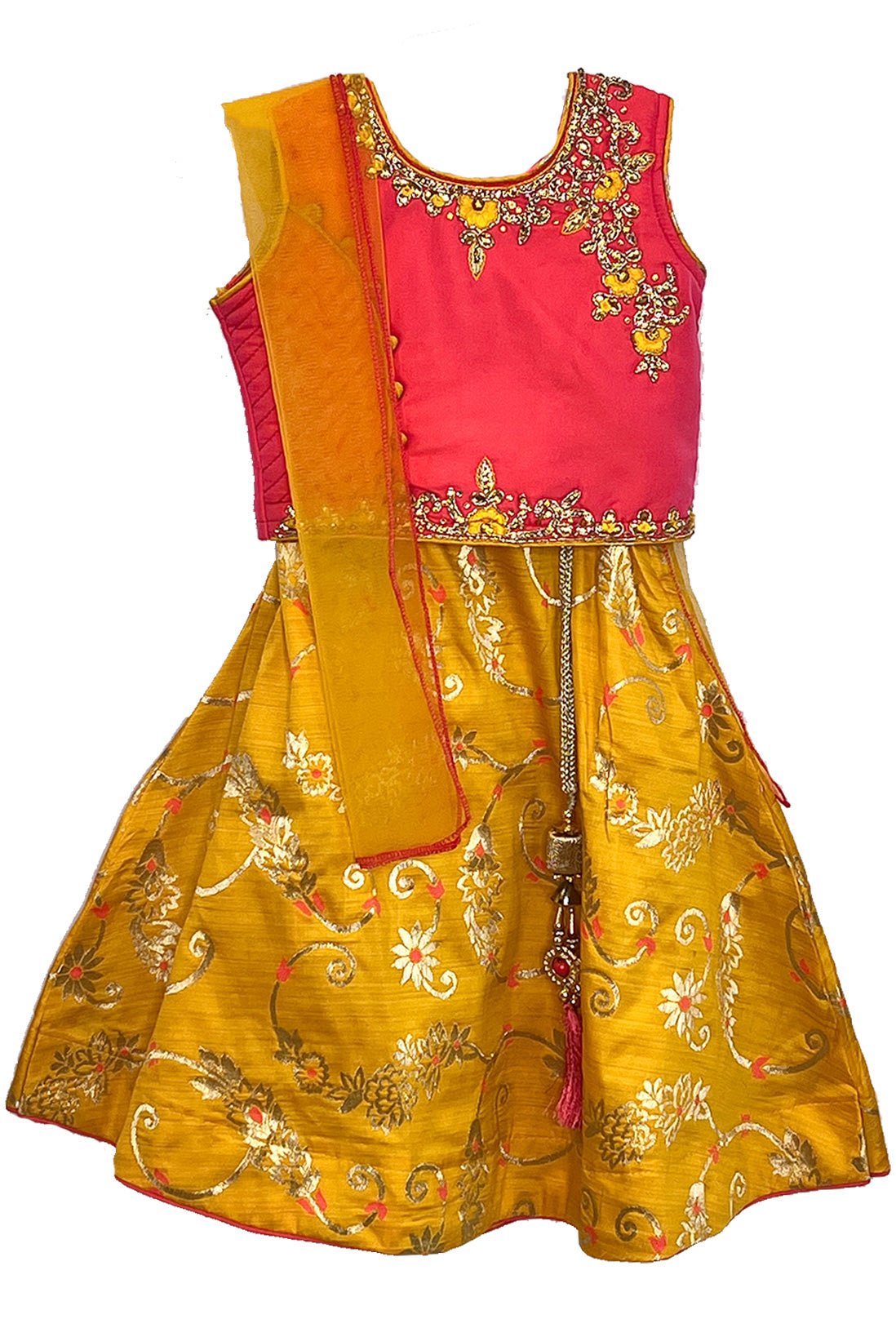 Peach/Yellow Crop Top-Lehenga with Shaded Net Dupatta