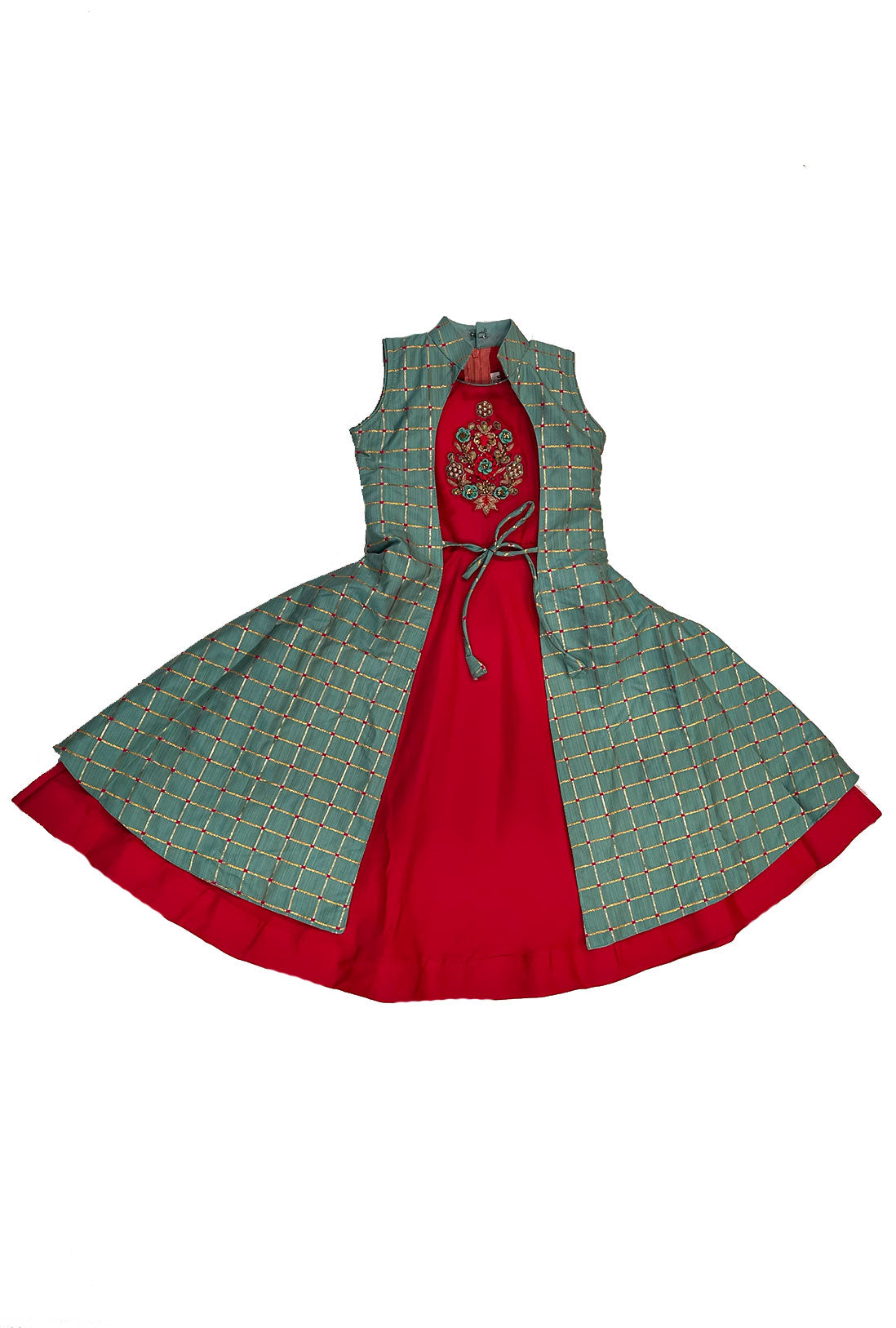 • Gown with a small stone, thread, zardozi embroidery work patch at front
